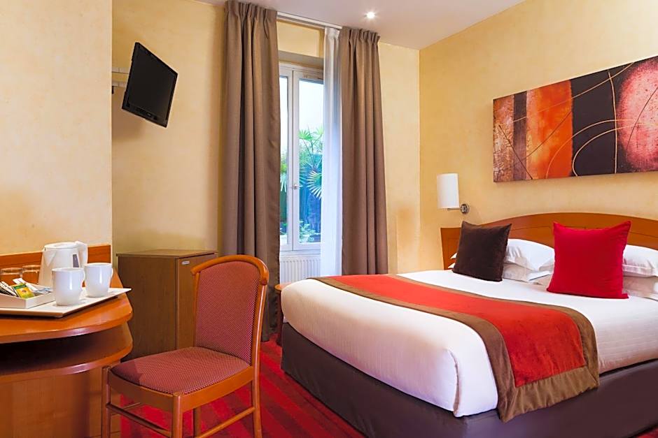 Decorated in warm tones, the rooms feature an LCD TV and a mini-bar.